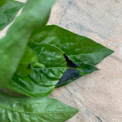 Check indigo pigment is present. Simply pluck the top leaves and crush into a ball of juicy green in the palm of your hand. Within 5 mins - 10 mins the sap from the leaves will turn from green to blue as it comes into contact with your personal ph and air. For a less messy alternative simply pinch the tips of your indigo or crinkle a leaf and the colour will show up after 30 mins or so. indigo is offered in all manner of sized leaf the smaller the better some may thing. Harvesting at regular intervals at 5 - 6 weeks and feeding on a weekly basis is good practise.